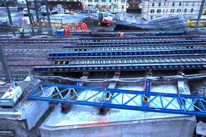 The most significant recent developments have taken place in the first sub-lot. In mid-November, work began on the railway track area to lay the track support systems for the Brenner and Pusteria railway lines and the construction of the railway underpass was decisively sped up by the completion, over the past few days, of the work involved in driving the 2,700-tonne concrete structure, which was manufactured off-site, under the railway line using hydraulic thrust.