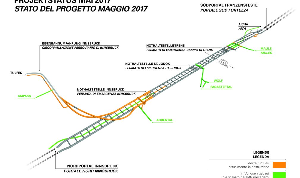 The two connecting tunnels link the Innsbruck railway bypass, which has been operational since 1994, with the two main tunnels of teh Brenner Base Tunnel system. "Now we have an underground rail link between the Inn valley and the Wipp valley", said professor Konrad Bergmeister, CEO of BBT SE, speaking of this historical event.