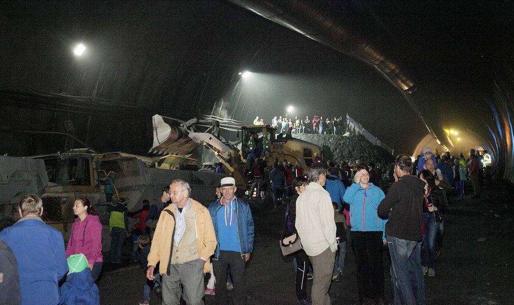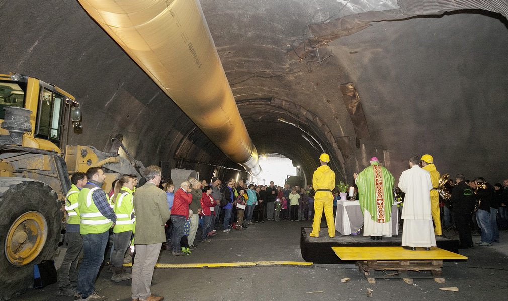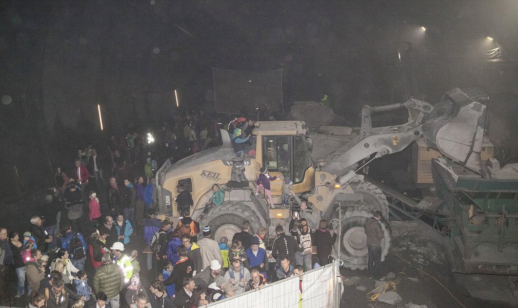 After the Mass said by the abbot of the Wilten monastery, Mag. Raimund Schreier, the visitors had the opportunity, for the entire day, to wander 800 m down into the Wolf access tunnel. In the large crushing chamber, the guests saw how the spoil is crushed and reduced to pieces. The large machines used to excavate the tunnel were also on display. Some tried their hand at using an excavator or concrete spray pump.