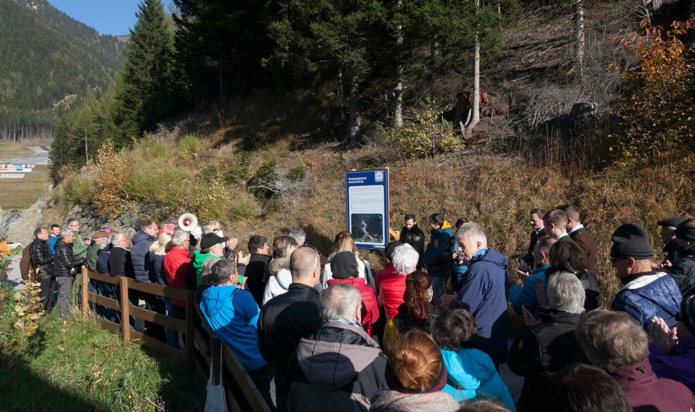 Because of the works on the Padaster valley disposal site, where a part of the spoil from the Brenner Base Tunnel will be permanently placed, several walking and mountain biking trails could no longer be used. In order to ensure that the end of the Padaster valley can be reached while work is under way on the Brenner Base Tunnel, this new panoramic trail was built. BBT SE, the project company, entrusted the town of Steinach with the construction and maintenance of the trail. In his speech, Mr. Josef Hautz, the mayor of Steinach, thanked Dr. Helmut Gassebner of the district office of forestry inspectors in Steinach for laying out the route for the path, forest ranger Arthur Fidler for his work during construction and BBT SE for the financing.