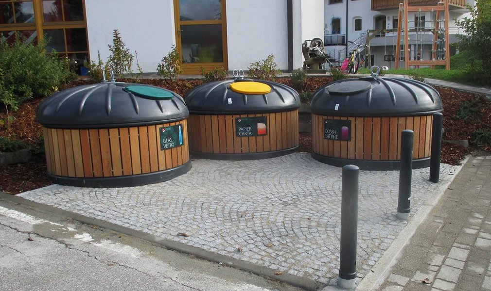 Si tratta di 14 isole ecologiche, dedicate alla raccolta differenziata dei rifiuti riciclabili, costituite da contenitori seminterrati rivestiti in legno con capienza di 5 m3 ciascuno. Questa opera di pubblica utilità rientra nel fitto programma di opere di compensazione previste nell’ambito della realizzazione della galleria di base del Brennero.