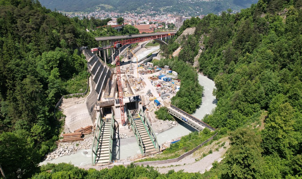 La parete di sostegno in cemento armato vicino al Sill, lunga ca. 200 m ed alta più di 9 m, è stata completata per il 75%: è qui che passerà la futura linea ferroviaria tra la stazione centrale di Innsbruck e il portale nord del BBT.