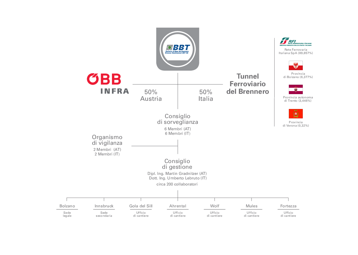 Le azioni della BBT SE sono ripartite in uguale misura tra Italia ed Austria.