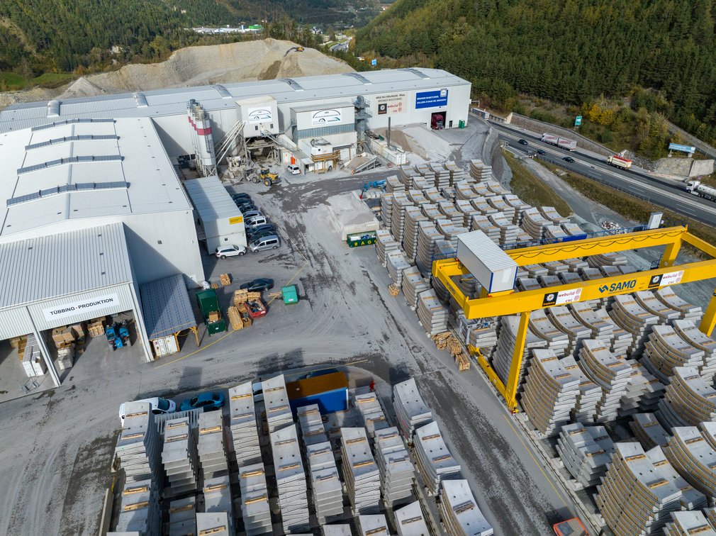 Während sich Ida zügig durch den Berg arbeitet, werden die Tübbinge im Außenbereich der Baustelle durch eine vorausschauende Planung ökologisch nachhaltig und effizient hergestellt.