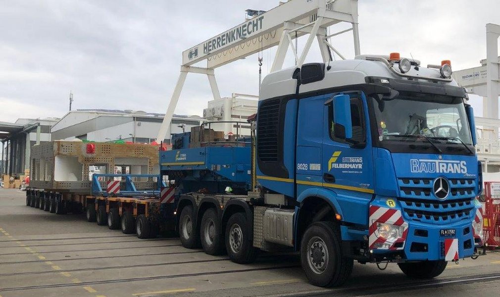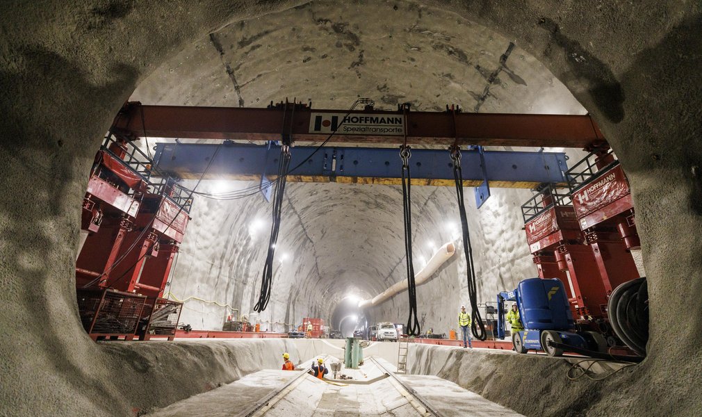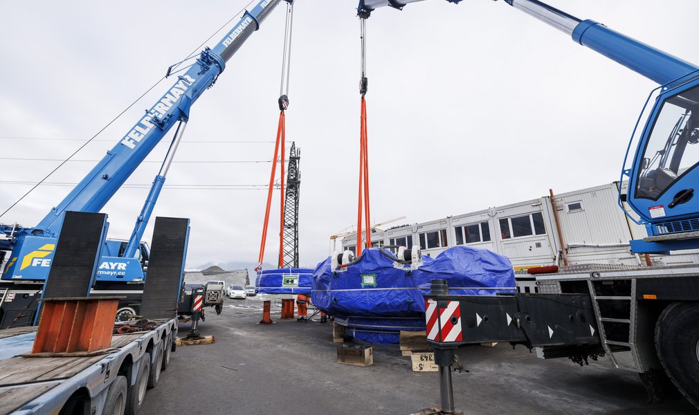 Die ersten Komponenten der Tunnelbohrmaschine (TBM) "Lilia" wurden auf der Baustelle "H41 Sillschlucht-Pfons" angeliefert. Auf der Baustelle südlich von Innsbruck sind heute die ersten Teile der Tunnelbohrmaschine "Lilia" eingetroffen. Dabei handelt es sich in erster Linie um Einzelteile des Bohrkopfes der Tunnelbohrmaschine. Dieser hat im zusammengebauten Zustand einen Durchmesser von rund 10 Metern. Die Teile werden in die sogenannte Montagekaverne gebracht und dort Stück für Stück zusammengesetzt.