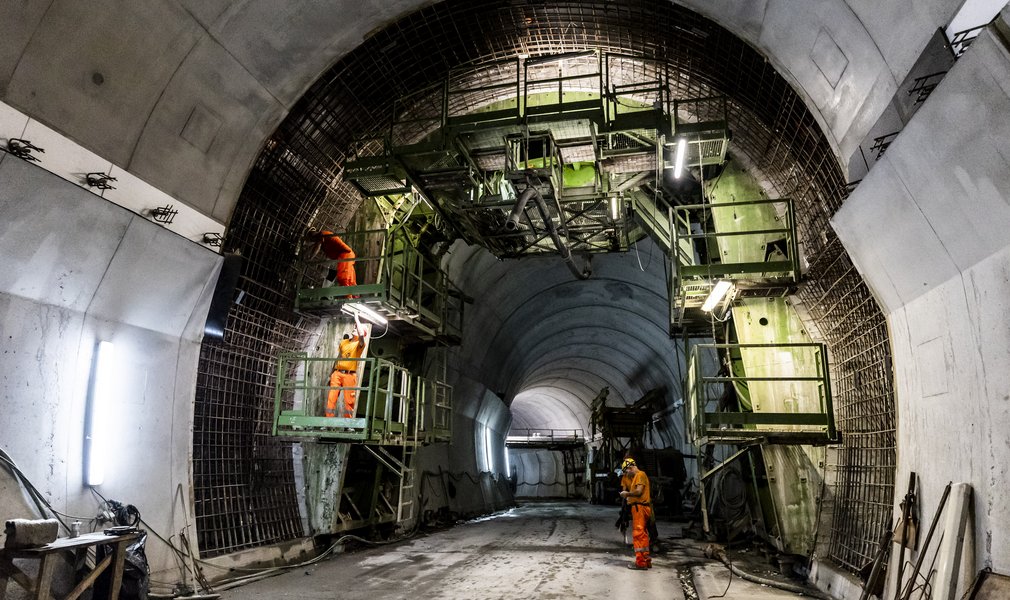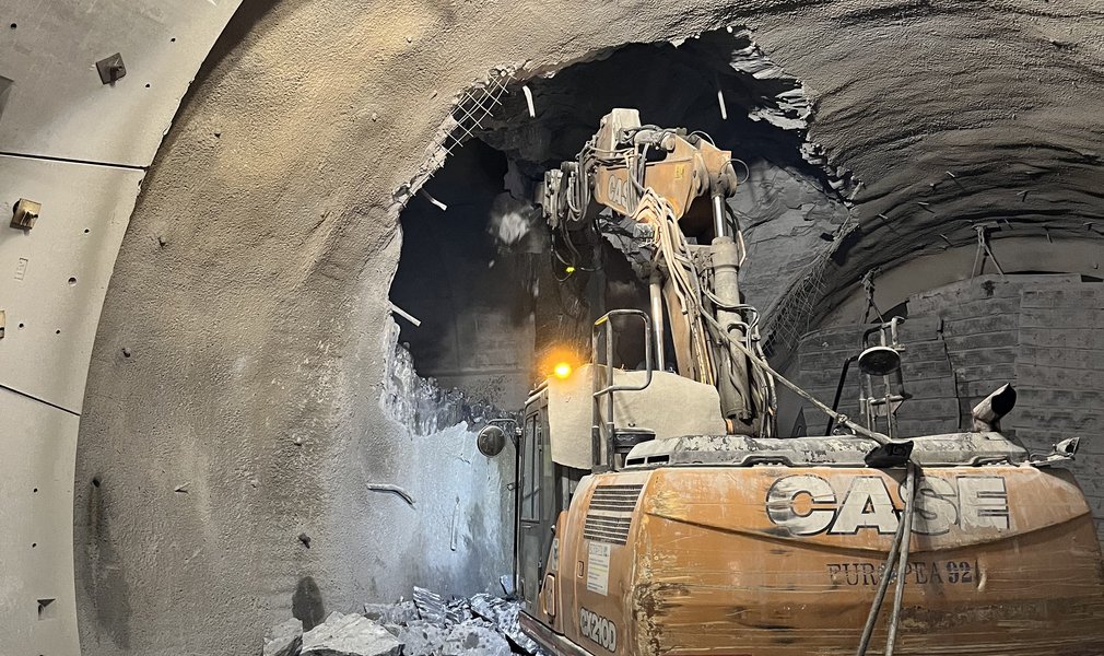 In der Nothaltestelle Trens konnten in den letzten Tagen zwei wichtige Arbeitsschritte abgeschlossen werden: Mit dem Einbau letzten Kalotte wurde die Innenschale der Nothaltestelle Trens fertig gestellt. Durch das rechtzeitige Entfernen der Tübbinge konnte in den frühen Morgenstunden des 24. März der Durchschlag zwischen dem letzten Teil des Stollens der Nothaltestelle und dem Haupttunnel Ost mittels Sprengung erfolgen. Damit wurde eine direkte Verbindung zwischen der Nothaltestelle und dem Haupttunnel Ost geschaffen, was einen wichtigen Fortschritt der Arbeiten darstellt.