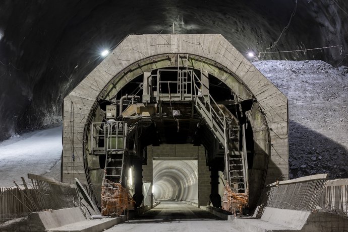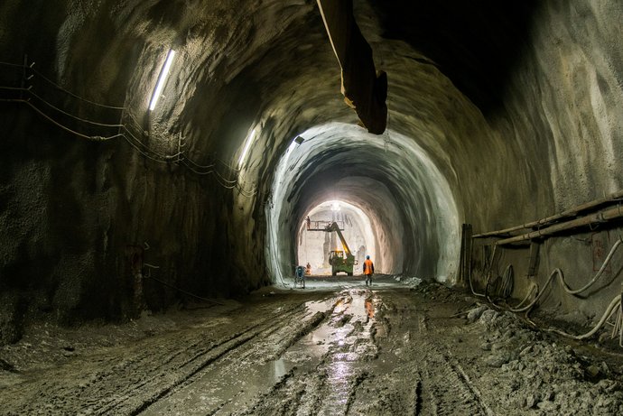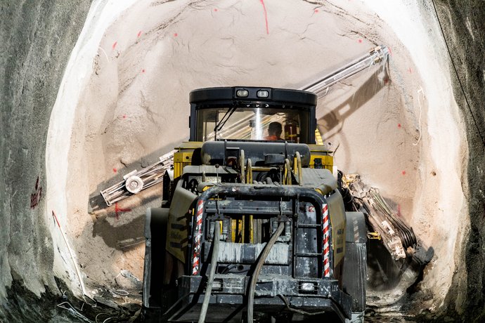 SPRENGVORTRIEB: Der bergmännische Vortrieb in Richtung Süden wurde im April 2017 begonnen und im Oktober 2020 bei beiden Haupttunneln abgeschlossen.