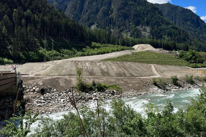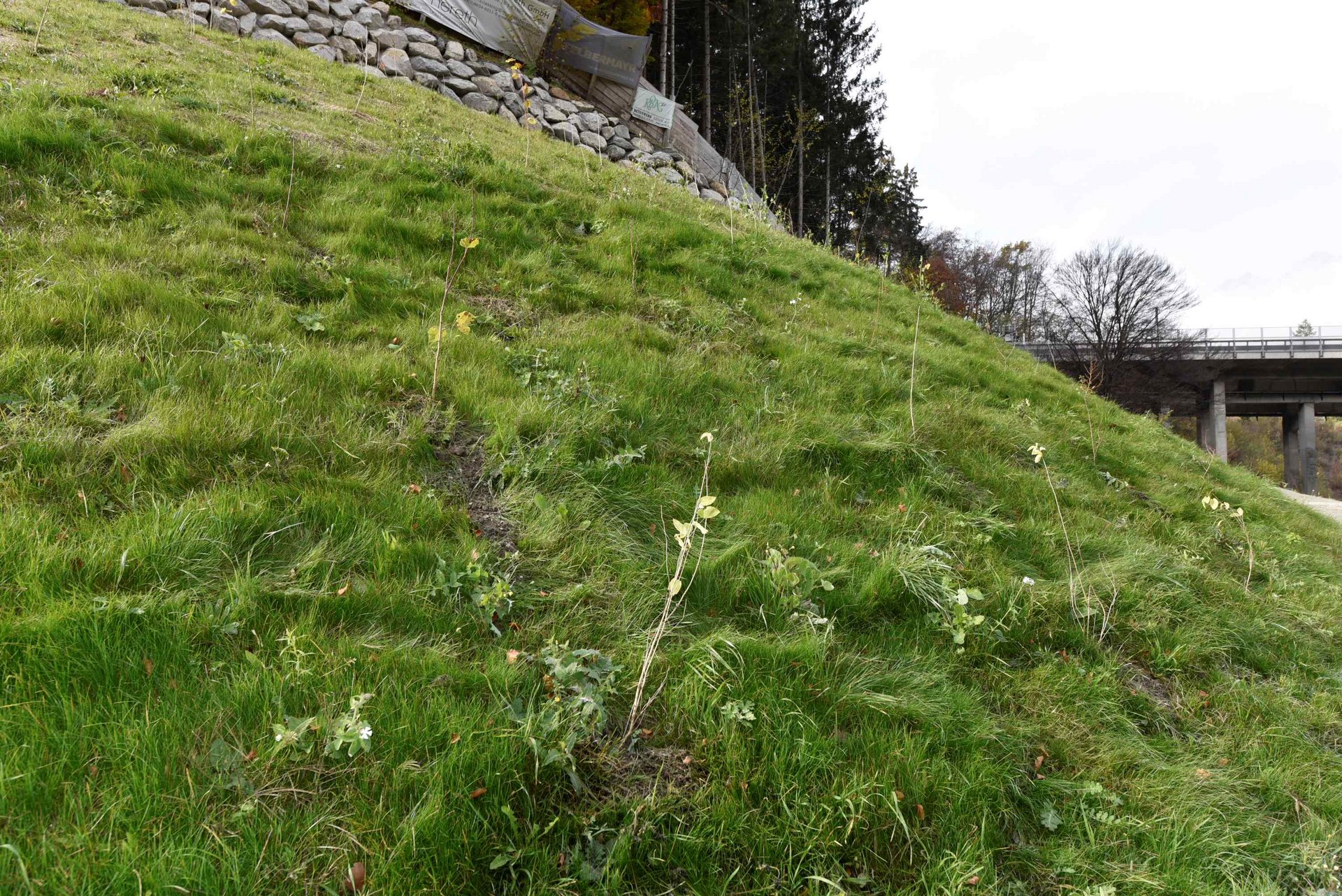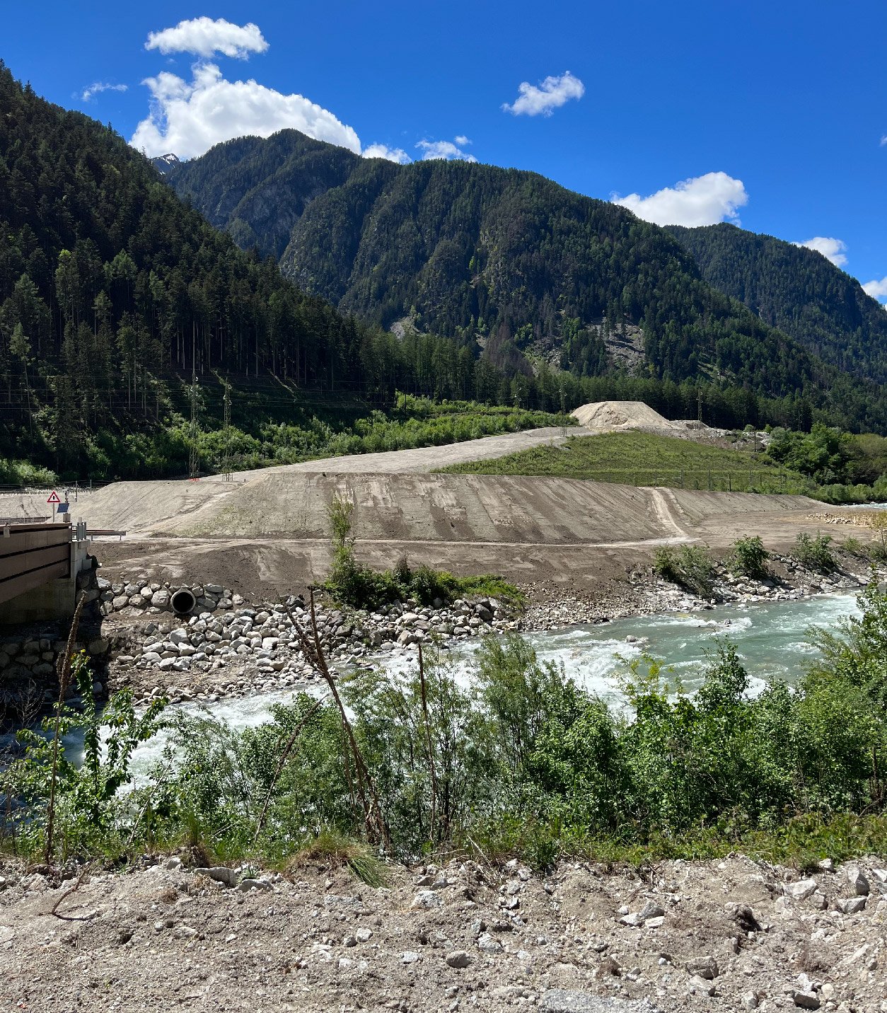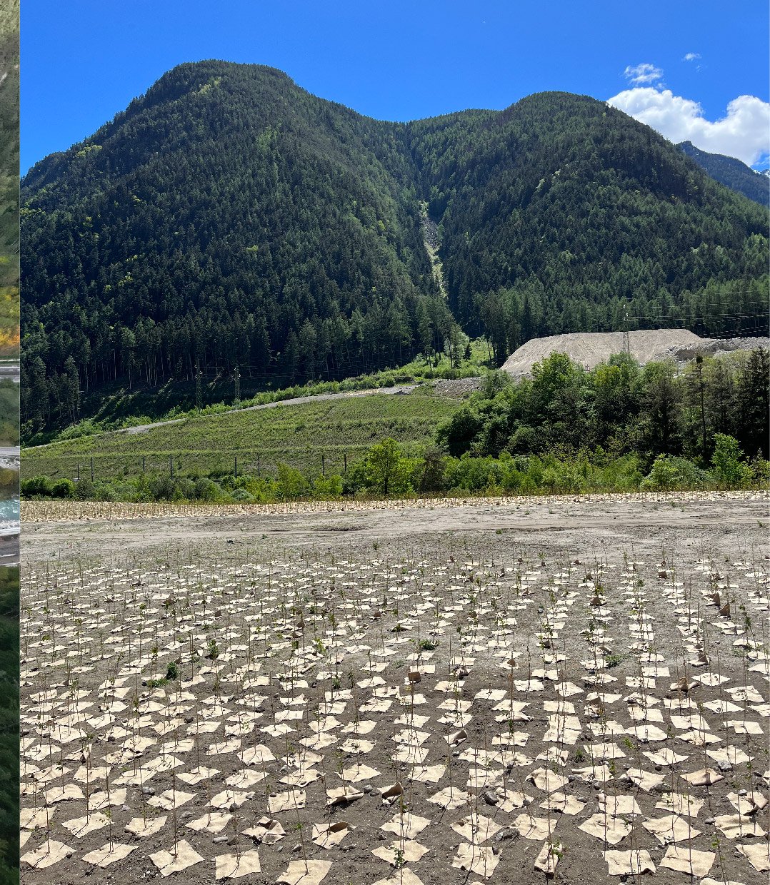 Die weitläufige Grünfläche in der Nähe von Franzensfeste lässt inzwischen kaum mehr erahnen, dass hier noch vor wenigen Jahren komplexe Tunnelbauarbeiten unter dem Fluss Eisack stattgefunden haben. Die Natur hat sich den Raum zurückerobert – unterstützt durch gezielte Renaturierungsmaßnahmen.