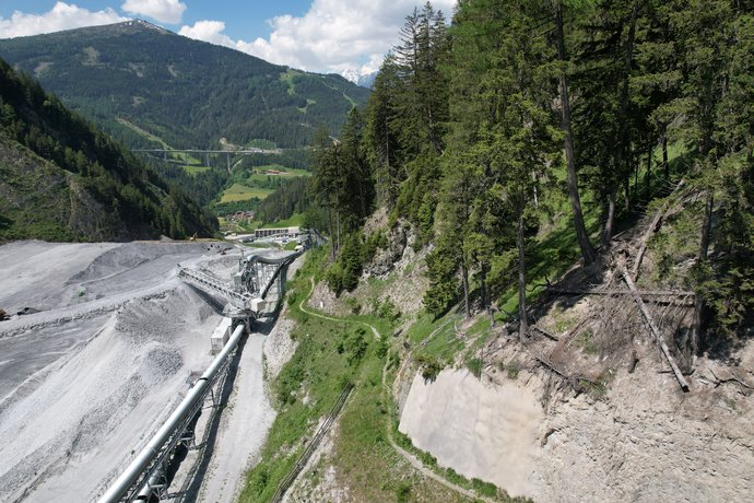 Mit einem Fassungsvermögen von rund 7,7 Mio. m³ ist die derzeit größte Bodenaushubdeponie Europas im Padastertal bei Steinach am Brenner angesiedelt. Auf dem Wanderweg durch das Tal kann man den nachhaltigen Transport des Ausbruchsmaterials über Förderbänder aus nächster Nähe beobachten.